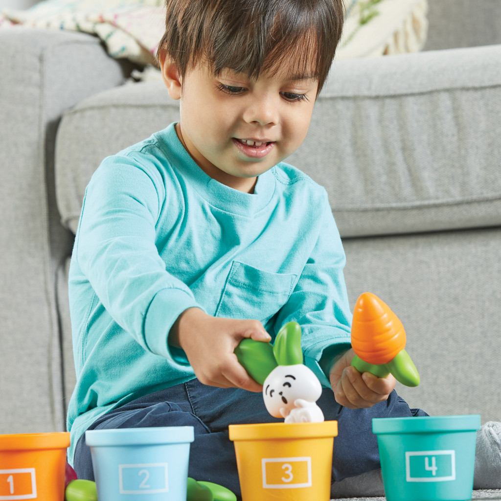 A játék során a gyerekek játékosan gyakorolják a számolást, a színek felismerését és a memóriát, miközben a zöldségeket újra és újra kihúzzák és visszaültetik a cserepekbe. Ez nemcsak a gondolkodást, hanem a finommotoros készségeket is erősíti.