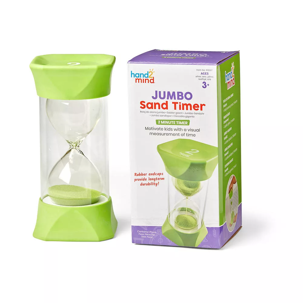 A 2 perces Jumbo homokóra tökéletes eszköz az idő vizuális érzékeltetésére. A gyerekek végigkövethetik, ahogy körülbelül két perc telik el, ami segíti az időérzék fejlődését, valamint a feladatokra való koncentrálást.