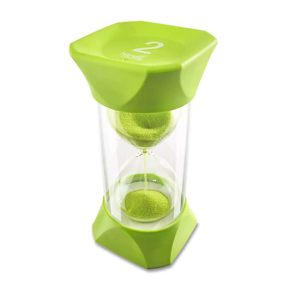 A 2 perces Jumbo homokóra látványos és kézzelfogható módon segít a gyerekeknek megérteni az idő múlását. A élénk zöld színű homok jól követhető, az extra nagy, masszív kialakítás pedig ideálissá teszi kisgyermekek számára otthon és a tanteremben egyaránt. Kiváló választás rövid feladatok időzítéséhez, figyelemfejlesztéshez és napi rutinok kialakításához.