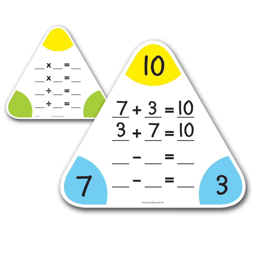 Kétoldalas táblák, amelyek segítik a gyerekeket a számok közötti kapcsolatok felismerésében. Az egyik oldalon összeadás és kivonás, a másikon szorzás és osztás gyakorlására. 5 db letörölhető tábla, méret: 25 cm. 6 éves kortól.