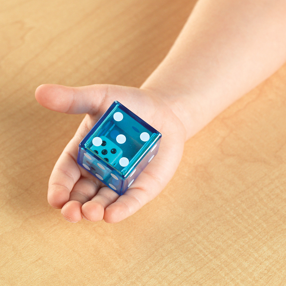 12 darab extra nagy méretű, színes dupla dobókockát tartalmaz, amelyekkel a gyerekek játékos módon fedezhetik fel a matematikai fogalmakat. A kockák különleges kialakítása – egy kisebb kocka a nagyobb belsejében – lehetőséget ad a kettős dobásra, így egyszerre két eredményt figyelhetnek meg a tanulók.