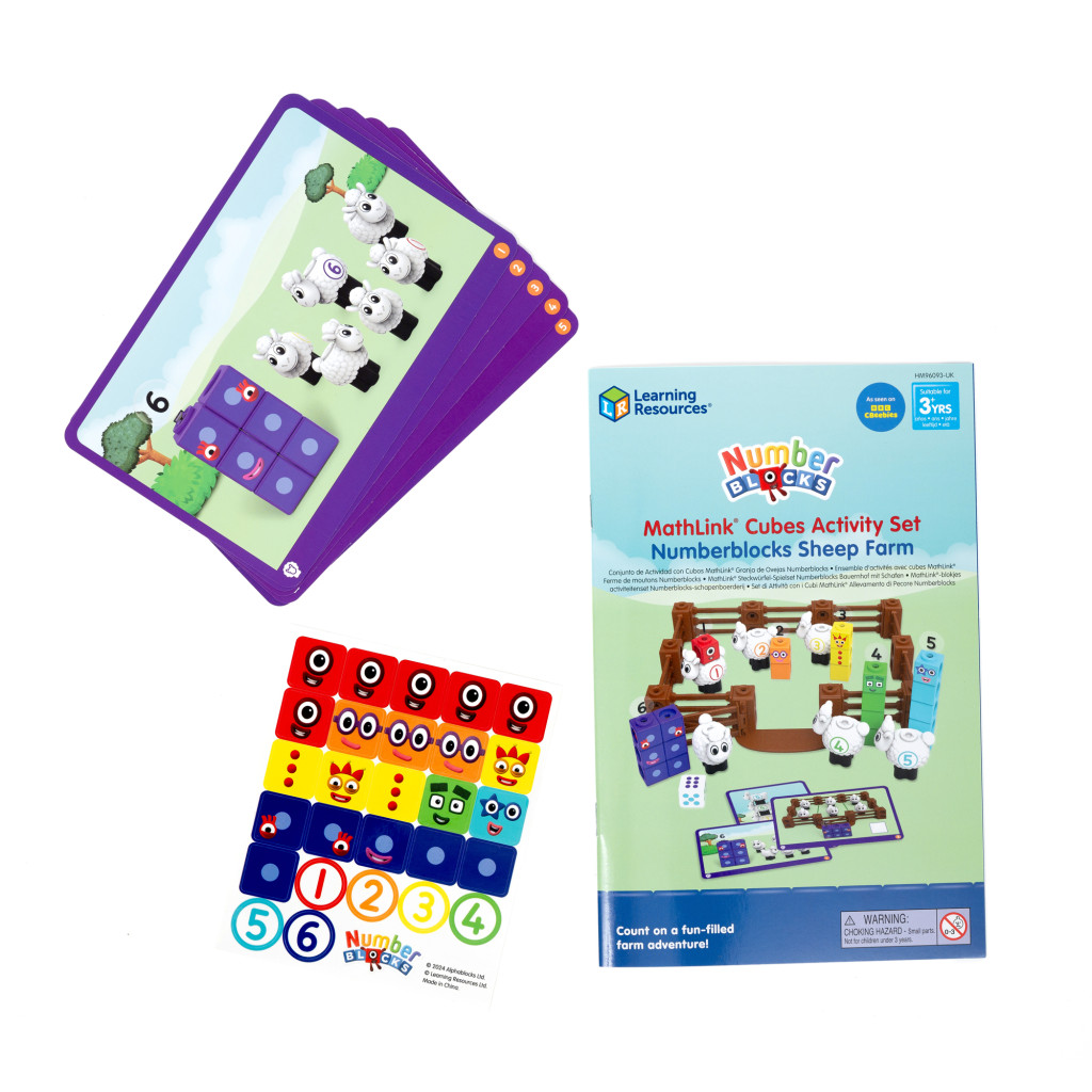 A gyerekek a készletben található MathLink® kockákat, a hivatalos Numberblocks színekben, használják fel, hogy megépítsék az 1-től 6-ig terjedő karaktereket, valamint a juhok karámját, ahol megszámolhatják és gondozhatják a barátságos juhokat.
