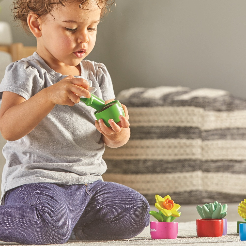 Ültess új készségeket a tanulás kertjébe a Színek és formák kertjével! A gyerekek a színes növényeket a megfelelő formájú cserepekbe helyezve játékosan fejlesztik a forma- és színfelismerést, a számolást és a finommotorikát.