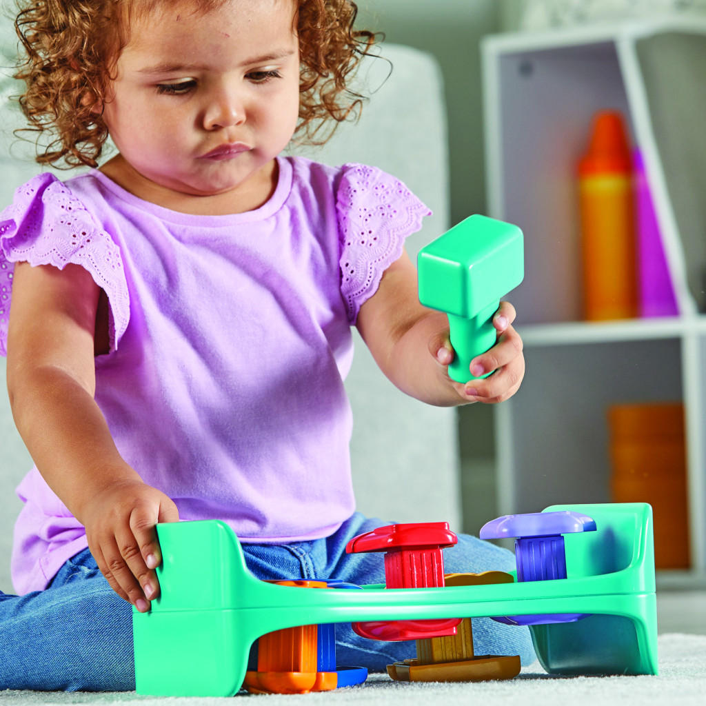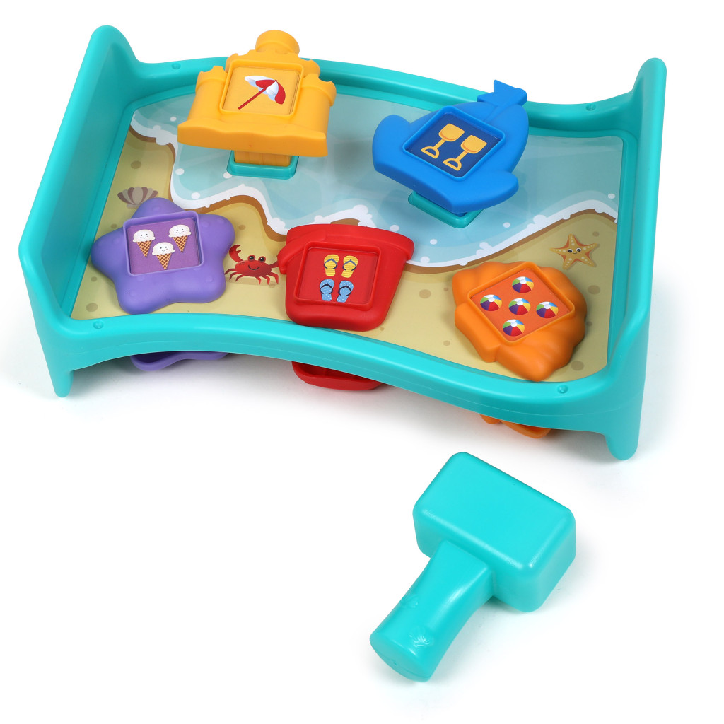 A gyerekek a gyerekbiztos kalapáccsal ütögethetik a 5 színes tüskét, mindegyik más-más alakú. A tüskék egyik oldalán számok találhatók, a másikon pedig a számnak megfelelő tengerparti tárgyak, így a játék egyszerre fejleszti a szám- és formafelismerést.