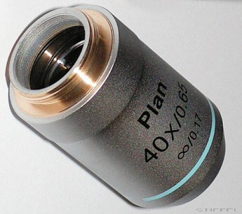 Planobjektív (40x, infinity) Lacerta Infinity mikroszkóphoz. Végtelen tubushosszú mikroszkópokhoz való különböző nagyítású planobjektívek.