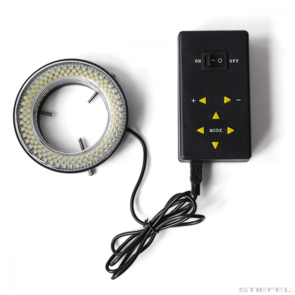 LED-es gyűrűs megvilágítás változtatható nagyítású sztereómikroszkópokhoz (144 db fényforrás, negyedkörös szegmensekként kapcsolható).