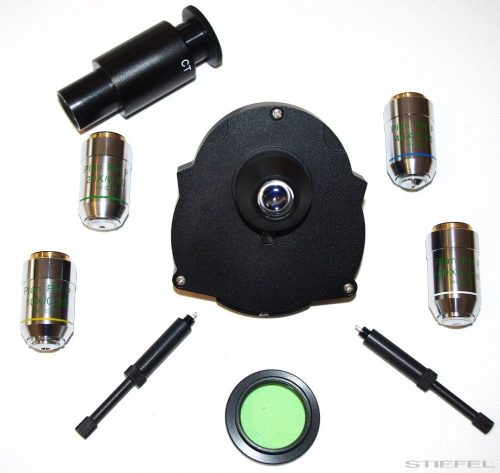 • A fáziskontraszt szett a fáziskontraszt-kondenzorból, valamint 4 objektívből és a hozzá tartozó 4 gyűrű-diafragmából áll.