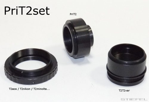 Fotoadapter-szett Zeiss Primostar Fototubusról DSLR kamerára. A szett tagjai: PriT2, T2T2var és egy T2-DSLR adapter.