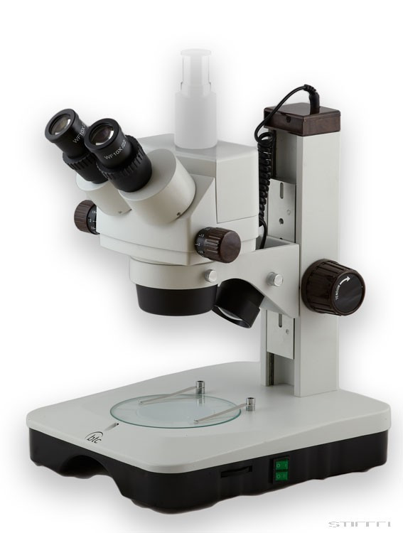 Sztereómikroszkóp, mely zoom tárgylencsékkel rendelkezik. Valódi sztereó kép, melynek nagyítása fokozatmentesen változtatható, a gyári okulárokkal 7x és 45x-es értékek között.