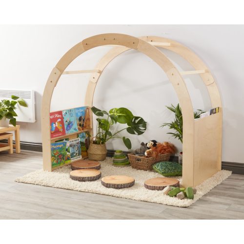 A Rafiki olvasókuckó az a varázslatos, meghitt és inspiráló tanulótér, amely egyetlen mozdulattal képes a gyerekeket egy sárkányokkal, tündérekkel és mesebeli kalandokkal teli világba repíteni. Természetes, harmonikus megjelenése tökéletesen illeszkedik bármely tanterembe, miközben olyan biztonságos és hívogató kuckót hoz létre, ahol a gyerekek szívesen olvasnak, beszélgetnek vagy elmélyülten játszanak. A kétoldali beépített könyvespolc rengeteg lehetőséget kínál: a gyerekek kedvük szerint válogathatnak a mesék között, így a könyvválasztás és az olvasás valódi élménnyé válik. A tágas kialakításnak köszönhetően több gyermek is kényelmesen bebújhat alá játékaival, takaróival vagy figuráival, így a kuckó egyszerre lehet olvasósarok, szerepjátékos búvóhely vagy csendes beszélgetőtér. A teljesen testre szabható íves kialakítás különböző textilborításokkal alakítható, így a gyerekek saját kis világot teremthetnek maguknak — lehet belőle sötét, csillagos égbolt alatti olvasóbarlang vagy szivárványos, vidám mesekuckó. A Rafiki Olvasókuckó könnyedén kombinálható más beltéri eszközökkel, szőnyegekkel, takarókkal vagy nagyobb játékelemekkel, így bármilyen pedagógiai célhoz igazítható. Egyszerűen összeszerelhető és könnyen áthelyezhető, ezért rugalmasan alakíthatod vele a tanulóteret, akár napközben is. Nem csupán egy búvóhely, hanem egy olyan inspiráló tanulási zóna, amely segít a gyerekeknek elmélyülni a történetekben, fejleszti a fókuszt, ösztönzi a szerepjátékot és támogatja a nyugodt, biztonságos tanulási élményt.