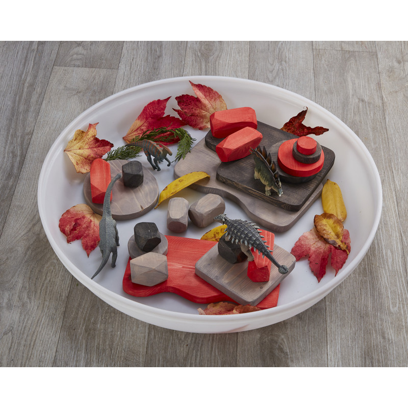 A vulkanikus és földszínű fa elemekből álló 20db-os készlet tökéletes alap egy dinoszauruszos, kalózos vagy fantáziavilág-játékokhoz. A változatos formák ösztönzik a kreativitást és a történetmesélést. Ajánljuk Élmény- és Tereptálcáinkhoz.