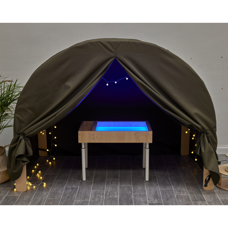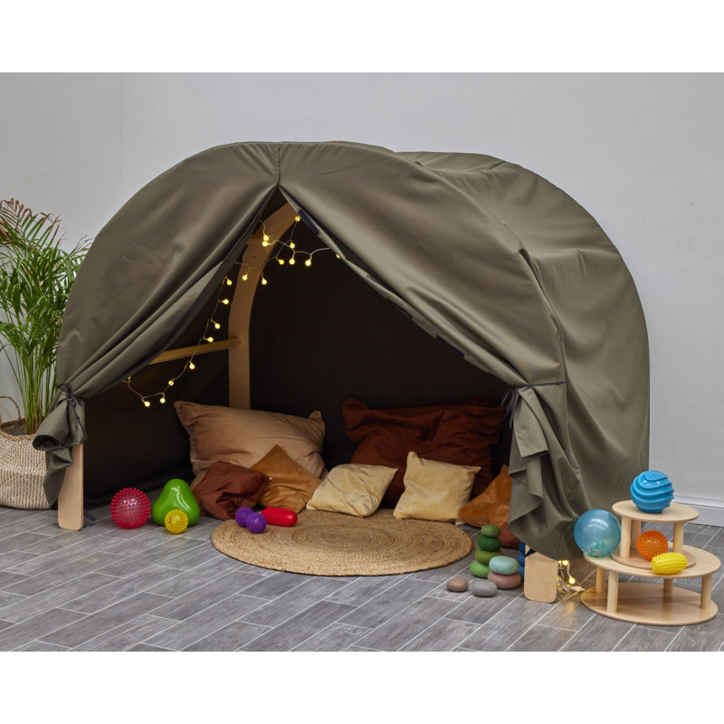 Ez a kiegészítő sátor sötét, meghitt teret hoz létre az Umbu íves kuckóban. Ideális fényjátékhoz, csendes pihenéshez vagy szenzoros tevékenységekhez.
