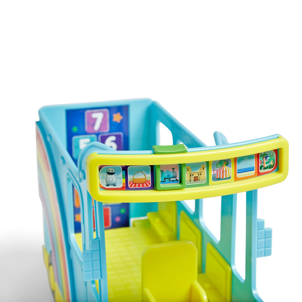 A busz belsejében ülőhelyek várják a Numberblocks barátokat, így Egyes, Kettes, Hármas, Négyes, Ötös és Hatos figurák is csatlakozhatnak az úthoz (külön kaphatók). A mellékelt matricaívvel a gyerekek saját ízlésük szerint személyre szabhatják a járművet.