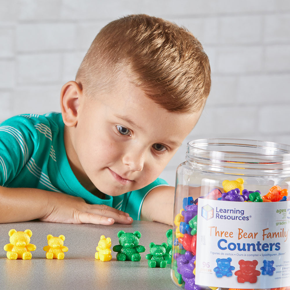 A Macicsalád a szivárvány színeiben 96 különböző méretű és súlyú, 6 színű macifigurát tartalmaz, amelyek segítenek a számlálás, csoportosítás, mintázás és tömeg-összehasonlítás játékos elsajátításában. Tartós, színes és könnyen tisztítható fejlesztőeszköz otthonra és óvodába egyaránt.
