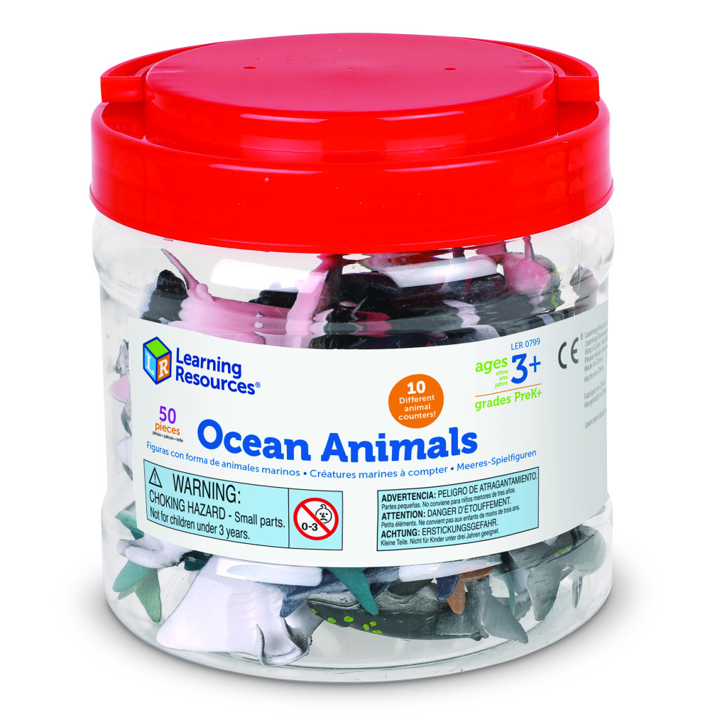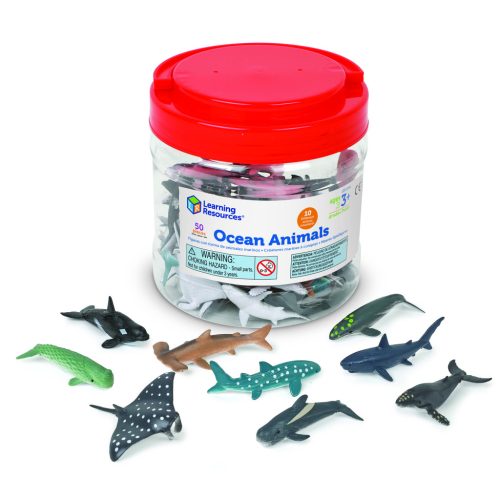 50 darabos tengeri állat számlálókészlet 10 különböző figurával. Ideális számoláshoz, válogatáshoz és mintázáshoz. Praktikus, újrazárható tárolódobozban.