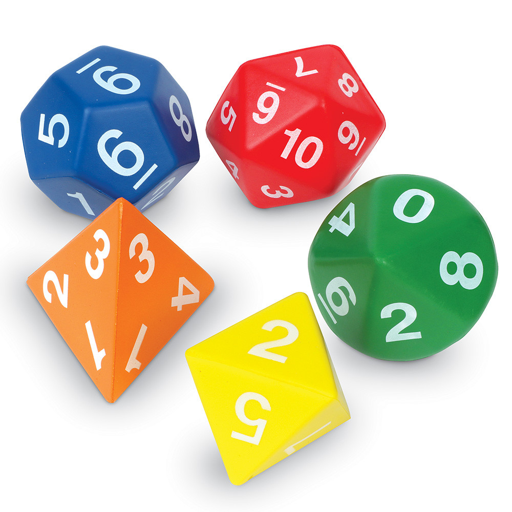 A készlet öt különböző poliéder dobókockát tartalmaz, amelyek puha habszivacsból készültek, így biztonságosan és csendesen használhatók. A készletben található dobókockák 4, 8, 10, 12 és 20 oldalú változatban segítik a gyerekeket a számfogalom, összeadás, kivonás, nagyobb/kisebb és egyéb matematikai készségek játékos elsajátításában.