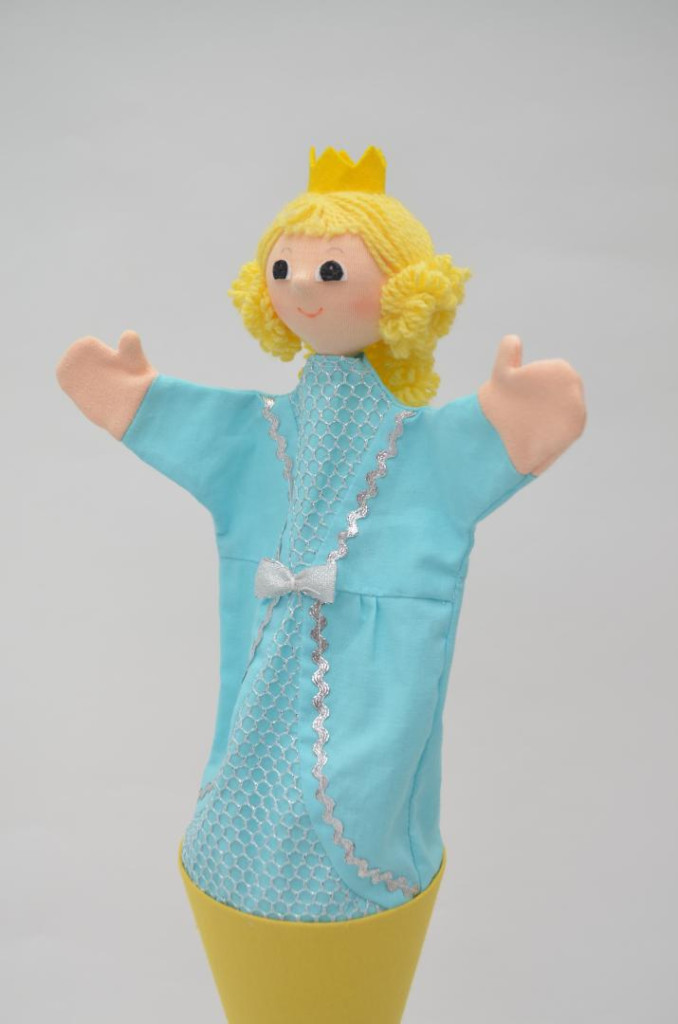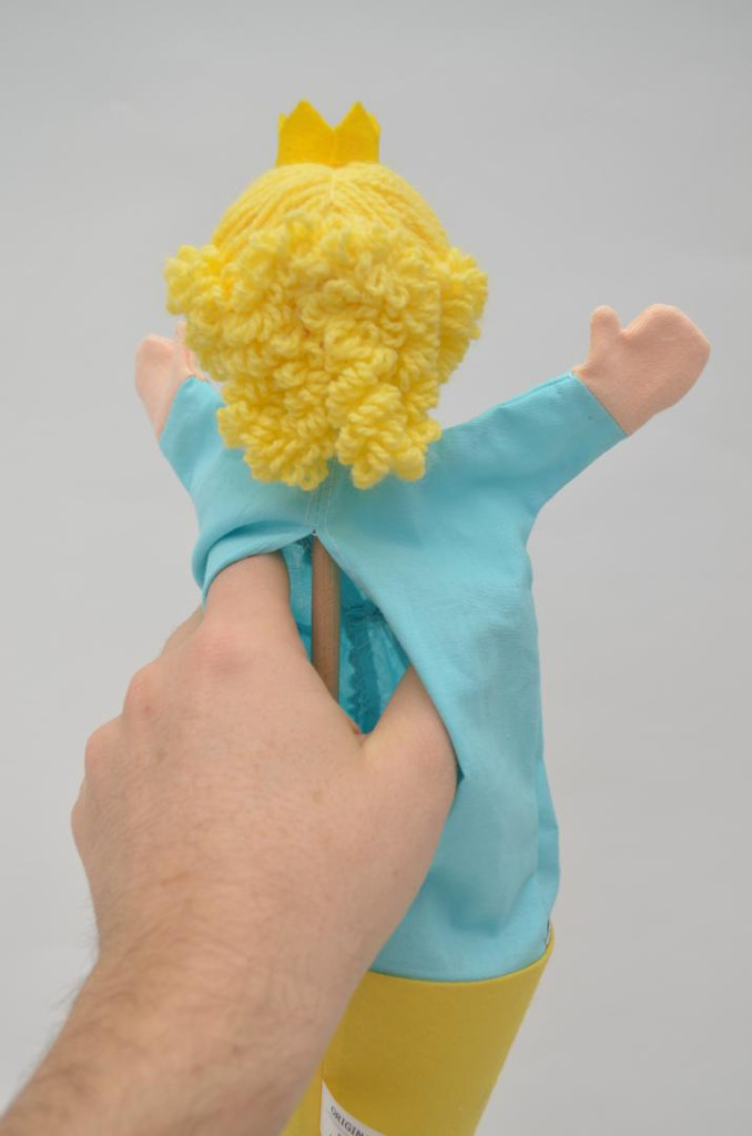 A „3 az 1-ben” felugró báb = egy felugró báb + egy kézbáb + egy apróságok tárolására szolgáló tok. Egy fapálcával irányítható, amellyel a figura egy kúpba rejthető. A hátoldalán nyílás található, ahová be lehet dugni az ujjakat (mint egy kézbábnál), vagy kisebb ajándékok helyezhetők bele. Csak a felületét tisztítsa. Kézzel készült a Cseh Köztársaságban.