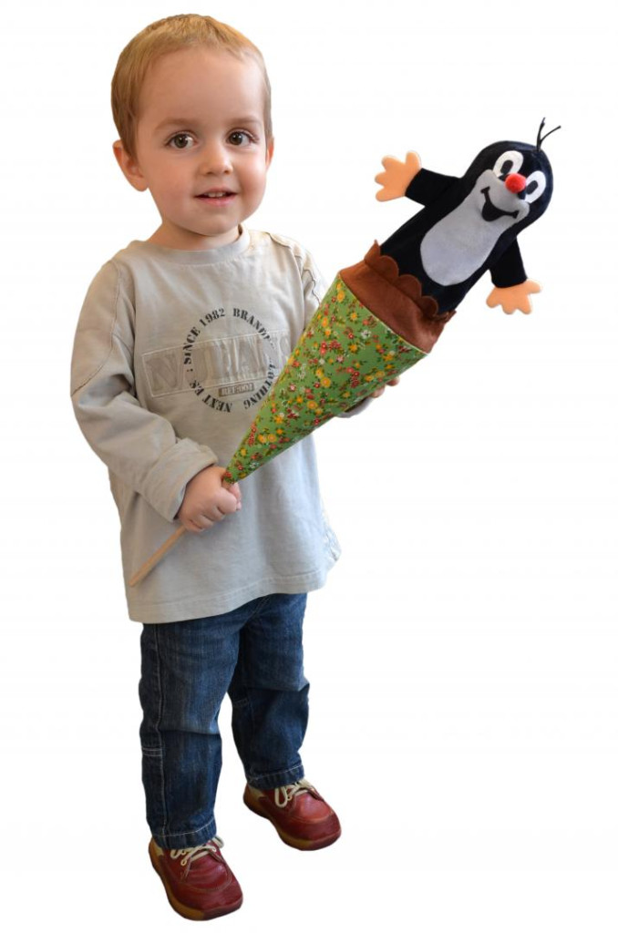 A „3 az 1-ben” felugró báb = egy felugró báb + egy kézbáb + egy apróságok tárolására szolgáló tok. Egy fapálcával irányítható, amellyel a figura egy kúpba rejthető. A hátoldalán nyílás található, ahová be lehet dugni az ujjakat (mint egy kézbábnál), vagy kisebb ajándékok helyezhetők bele. Csak a felületét tisztítsa. Kézzel készült a Cseh Köztársaságban.