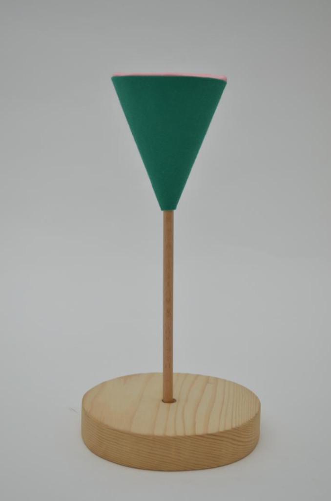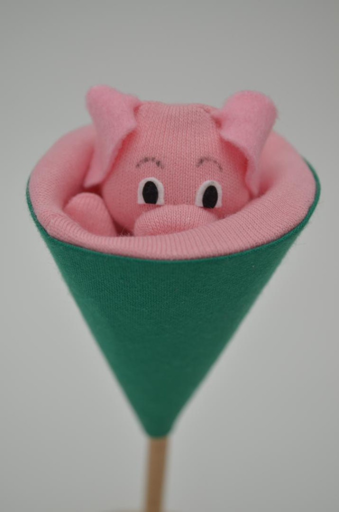 Textilből készült felugró báb, amelyet egy fapálcával lehet irányítani, így az egész figura egy kúpba rejthető. A pop-up báb játékra és dekorációként is használható. Csak a felületét tisztítsa. Kézzel készült a Cseh Köztársaságban.