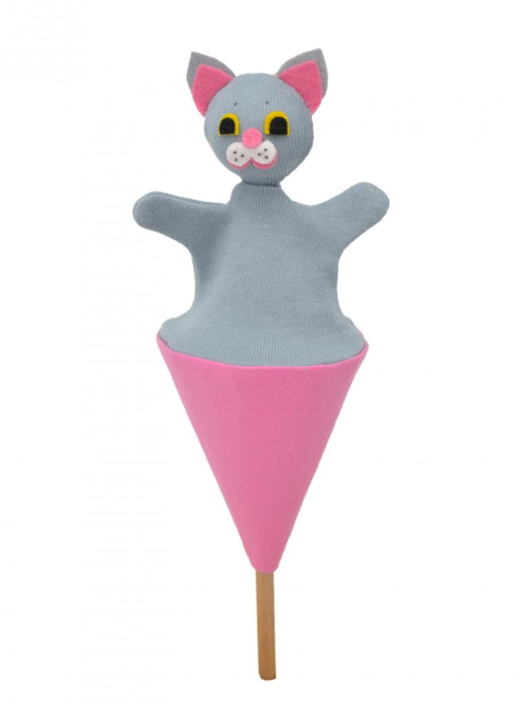 Textilből készült felugró báb, amelyet egy fapálcával lehet irányítani, így az egész figura egy kúpba rejthető. A pop-up báb játékra és dekorációként is használható. Csak a felületét tisztítsa. Kézzel készült a Cseh Köztársaságban.