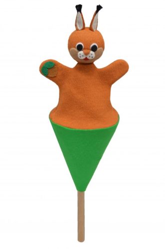 Textilből készült felugró báb, amelyet egy fapálcával lehet irányítani, így az egész figura egy kúpba rejthető. A pop-up báb játékra és dekorációként is használható. Csak a felületét tisztítsa. Kézzel készült a Cseh Köztársaságban.