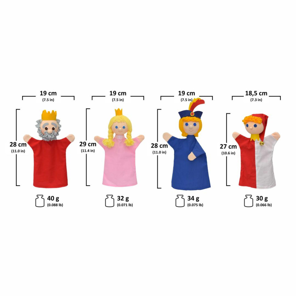 Kézzel készült, textil kézbáb szett. Vidám, könnyen mozgatható bábok, amelyek azonnal életre keltik a meséket. Csak felületi tisztítás ajánlott. Kézzel készült Csehországban.