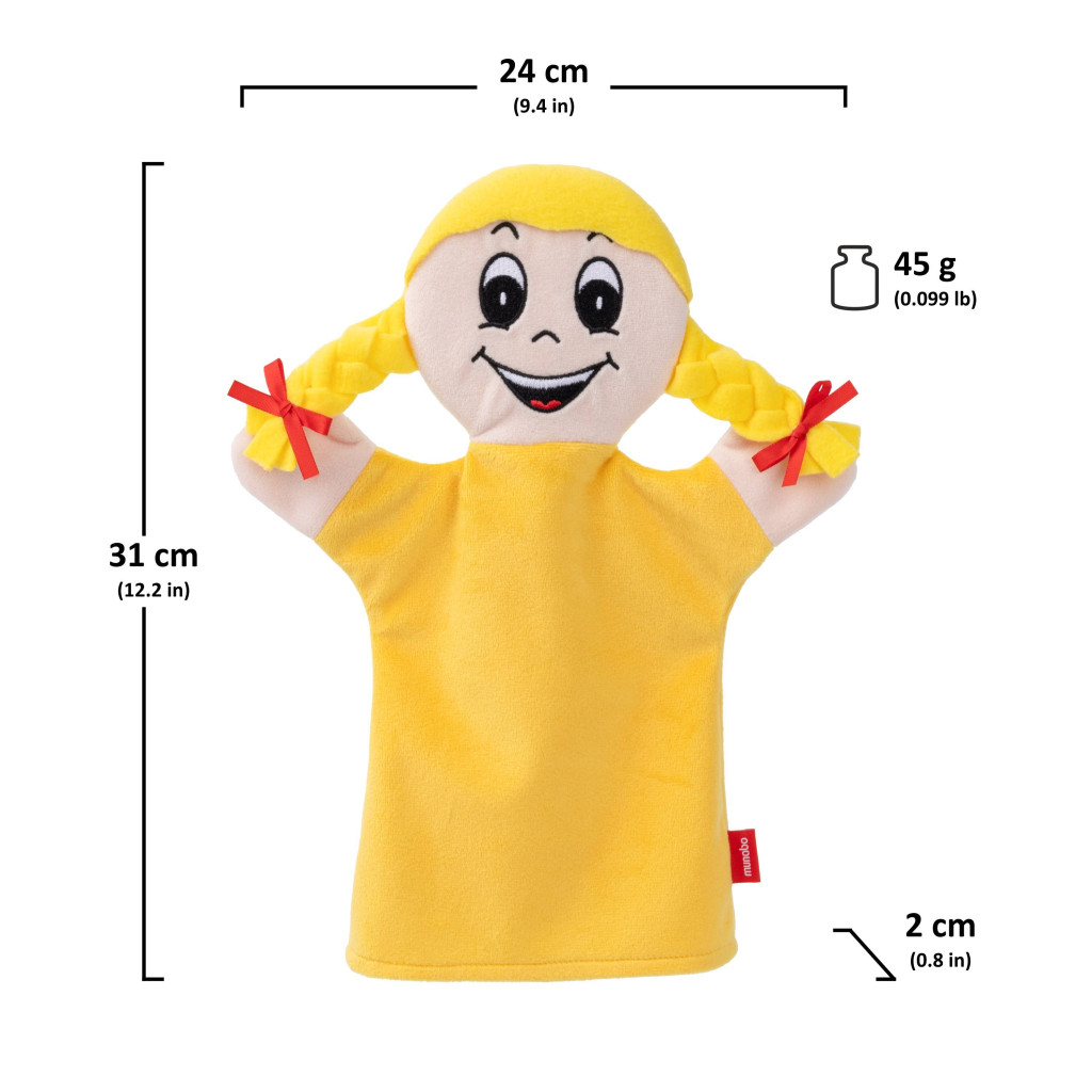 Textil kézbáb, amely érzelmet jeleníti meg. Alkalmas pszichológiai tanácsadáshoz, gyógypedagógusoknak, óvodapedagógusoknak, gyermekcsoportoknak, intézményi és otthoni játékhoz egyaránt. Természetes anyagokból készült. Az arca hímzett, a feje puhán tömött, és az egész bábu nagyon kellemes tapintású. Mosható. Mérete kb. 30 cm. Kézzel készült Csehországban.
