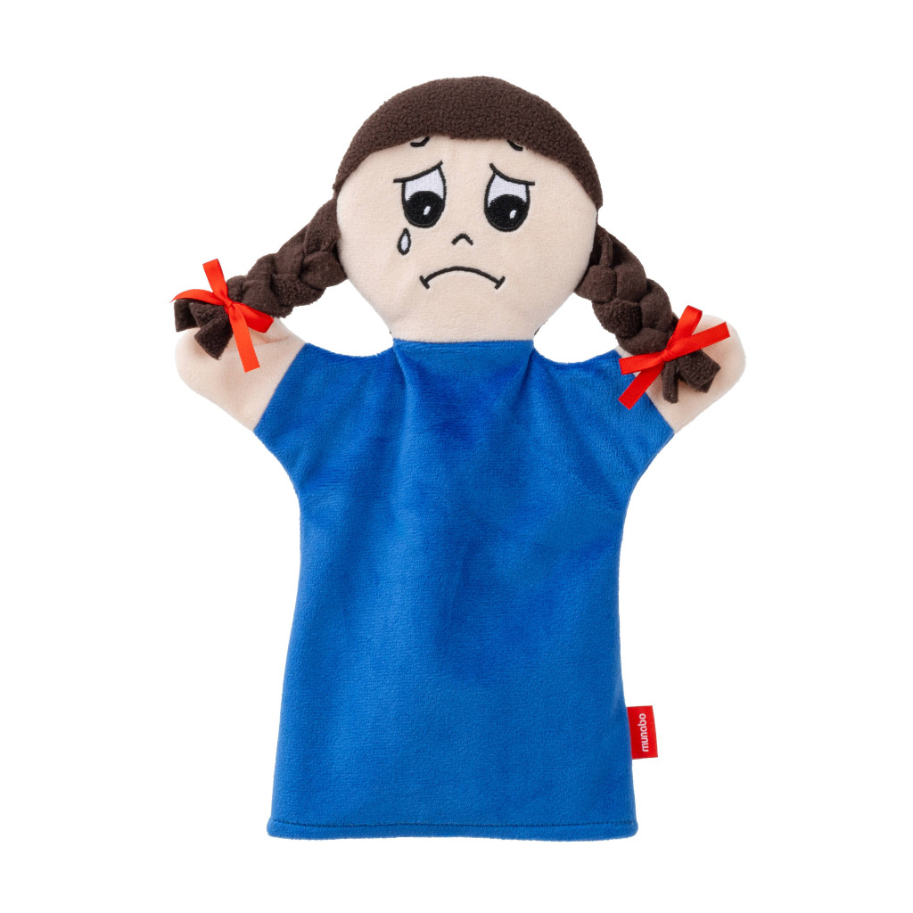 Textil kézbáb, amely érzelmet jeleníti meg. Alkalmas pszichológiai tanácsadáshoz, gyógypedagógusoknak, óvodapedagógusoknak, gyermekcsoportoknak, intézményi és otthoni játékhoz egyaránt. Természetes anyagokból készült. Az arca hímzett, a feje puhán tömött, és az egész bábu nagyon kellemes tapintású. Mosható. Mérete kb. 30 cm. Kézzel készült Csehországban.