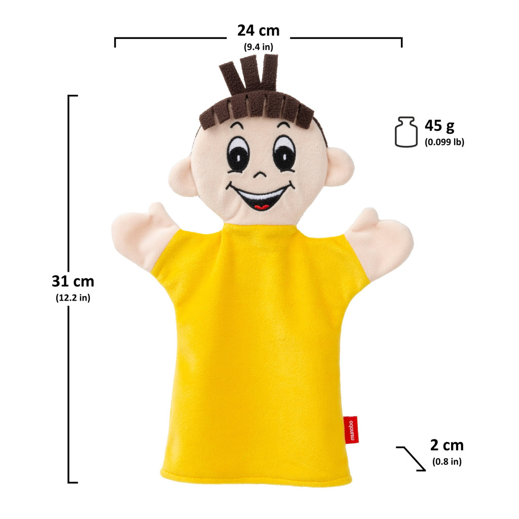 Textil kézbáb, amely érzelmet jeleníti meg. Alkalmas pszichológiai tanácsadáshoz, gyógypedagógusoknak, óvodapedagógusoknak, gyermekcsoportoknak, intézményi és otthoni játékhoz egyaránt. Természetes anyagokból készült. Az arca hímzett, a feje puhán tömött, és az egész bábu nagyon kellemes tapintású. Mosható. Mérete kb. 30 cm. Kézzel készült Csehországban.