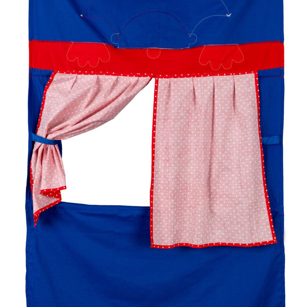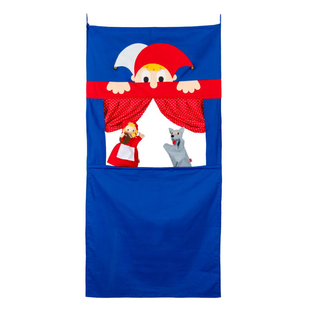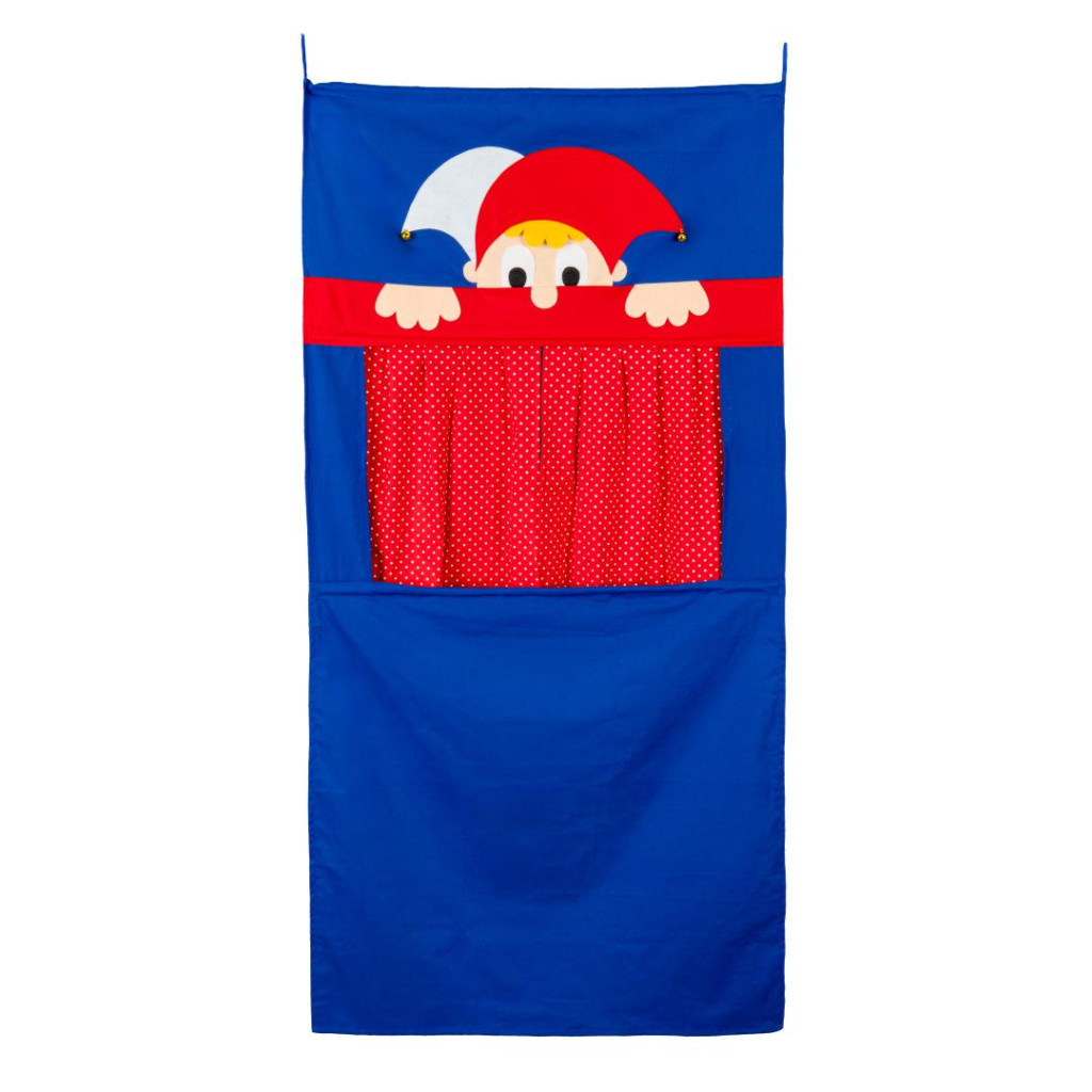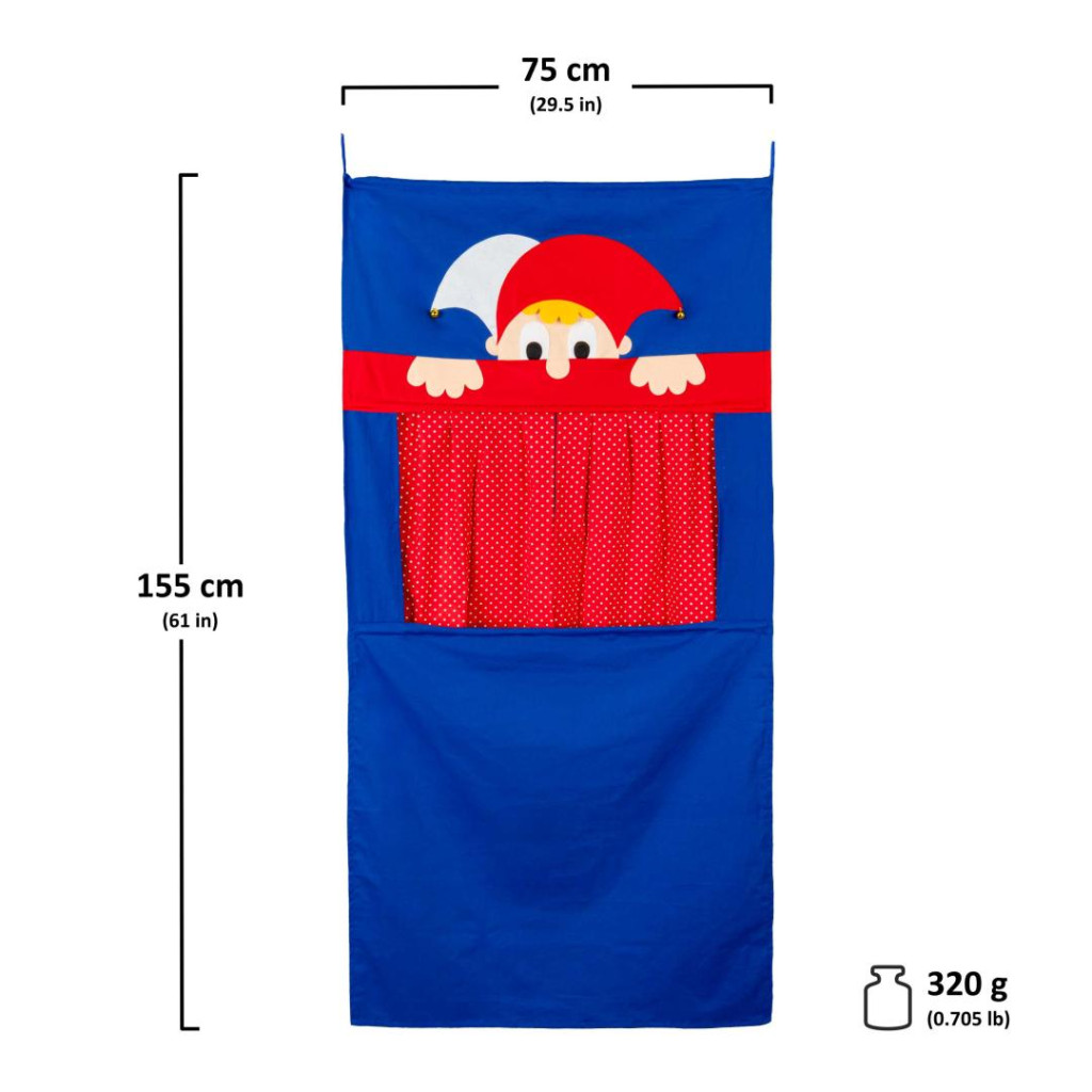 Textil ajtószínház függönnyel, fa lécekkel megerősítve. Praktikus kialakításának köszönhetően könnyedén felakasztható bármely ajtófélfára, így pillanatok alatt igazi bábszínházzá varázsolja a helységet. Csak felületi tisztítás ajánlott. Kézzel készült Csehországban.