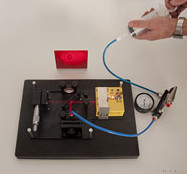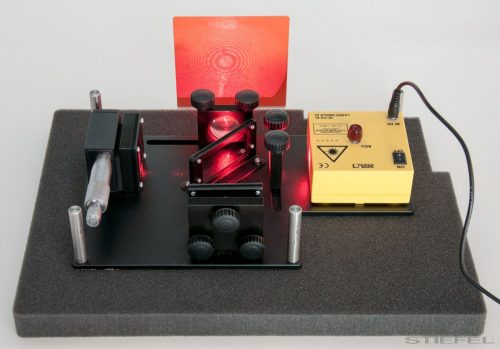 • Fém tartó piros fóliával az interferenciamintázat színes reprodukálásához.