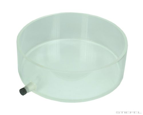 Akril tartály, elvezetőcsővel. Átmérő: 200 mm, magasság: 65 mm.