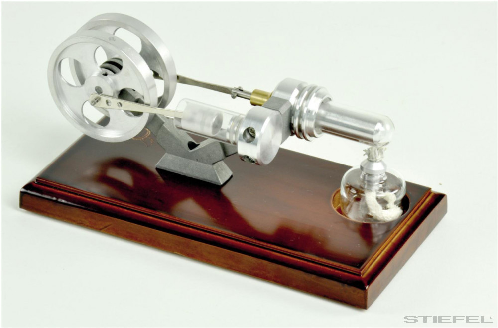 • Egyhengeres motor lendkerékkel, hűtőbordákkal ellátott talapzaton, amelyek a henger egyik felét fedik.