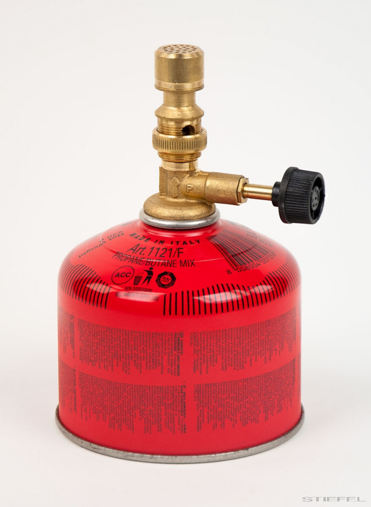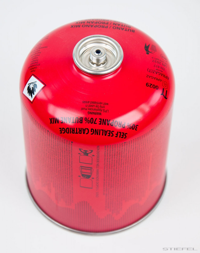 Gázkeverék (70% bután, 30% propán) biztonsági tartályban, szeleppel. Az EN 417 és az UN 2037 szabvány szerint ez a gázkeverék magasabb lánghőmérsékletet tesz lehetővé, mint a tiszta butángáz. A menetes szelepnek köszönhetően az Égőfej tetszőlegesen fel- és lecsavarható. D = 110 mm, H = 145 mm. Nettó töltősúly: 460 g.
