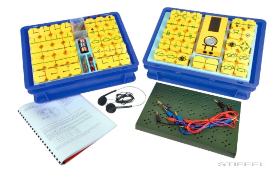 Diákkísérleti készlet dobozban. Főbb témák: félvezetők, diódák, tranzisztorok, kondenzátorok, egyenirányítás, multivibrátorok, rezgőkörök, erősítő áramkörök, logikai áramkörök. Az Elektromosság 1 kísérleti készlettel együtt használandó.