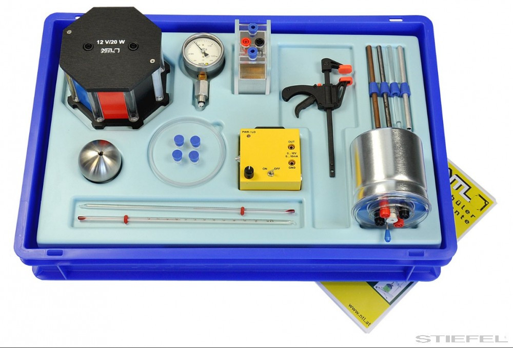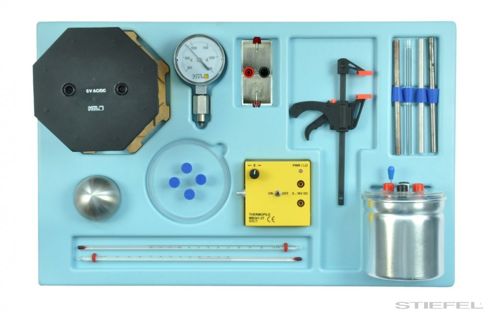 Diákkísérleti készlet dobozban. Főbb témák: Állapotváltozás, fajhő, A hőmennyiség mérése, Gázok hőtágulása, Hővezetés, Hősugárzás, Hőelnyelés, Munka és teljesítmény, Hőkibocsájtás, Hőegyenértékek, Hőenergia elektromos energiává történő átalakítása, Termoelektromos hűtés.