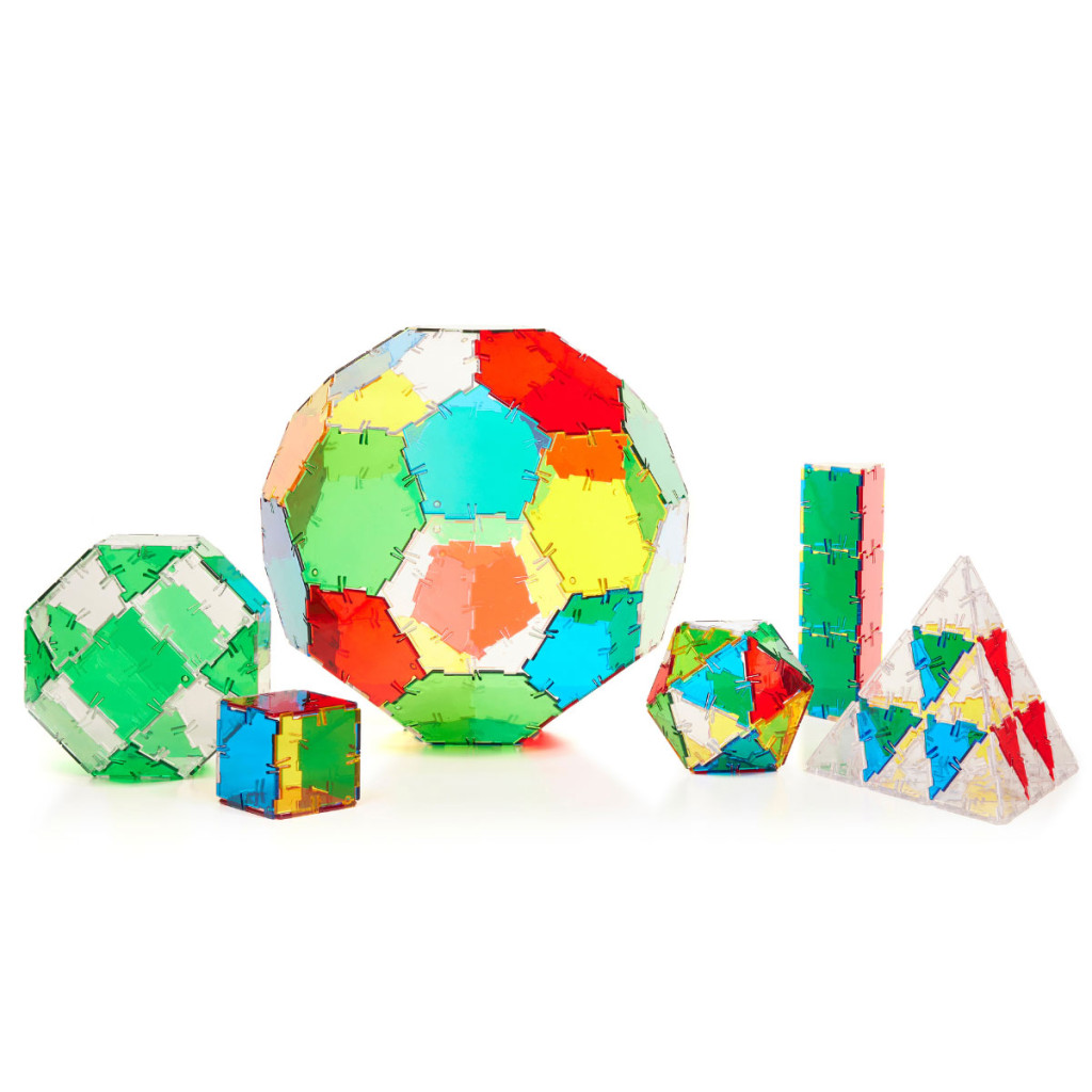 Készíts 2D és 3D modelleket – kockákat, tetraédereket vagy akár dodekaédereket – ezzel a 184 darabos, nagyméretű készlettel! Az átlátszó és színes elemek lehetővé teszik a térbeli szerkezetek belső megfigyelését, és kiválóan használhatók fényasztalon vagy fényforrás előtt.