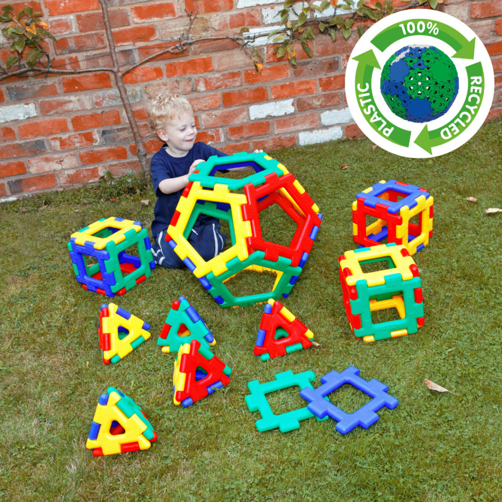 A készlettel a gyerekek megépíthetik és megvizsgálhatják az öt platóni testet, miközben játék közben fejlődik a térbeli gondolkodásuk és a formaérzékük. Az elemek könnyűek, mégis strapabírók, ezért beltéren és kültéren egyaránt jól használhatók.