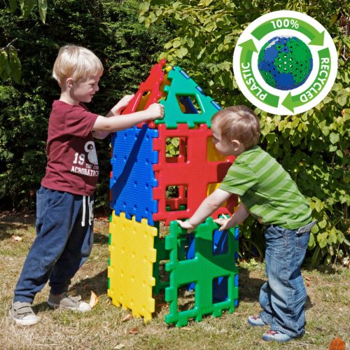 A nagy, könnyű és biztonságos elemek használhatók beltéren és kültéren, és könnyen elpakolhatók a játék végén. A négyzetek mérete 40,5 × 40,5 cm, így a gyermekek valóban lenyűgöző, nagy modelleket építhetnek.