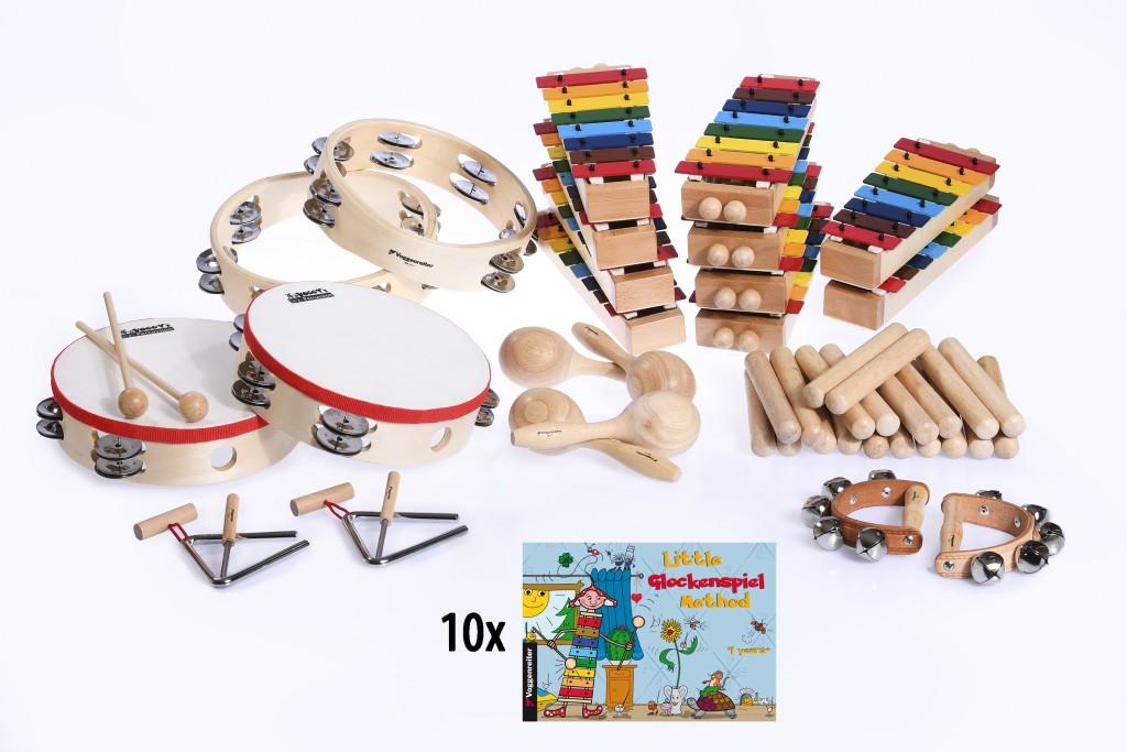 Ez a xilofon (Glockenspiel) és ütőhangszerekből álló készlet a tökéletes alapfelszerelés óvodák számára, játékosan nyitva meg a zene világát a gyerekek előtt. A diatonikus C–C hangolású xilofon fa hangszereleme inspiráló hangzást biztosít, a beépített ütő tartó pedig praktikus kiegészítő. A háromszög ragyogó hangját fa nyél és fa ütőszár teszi könnyen kezelhetővé, a maracas ergonomikus kialakítása kényelmes fogást biztosít, miközben hangja kiváló. A fej nélküli tamburin 12 pár fém csengővel tiszta és élénk hangot ad, a lapított fa perem pedig stabilan illeszkedik a gyerek kezébe. A száncsengő keskeny fa nyele biztos fogást nyújt, az 5 csengőt pedig erős bőr pánt tartja stabilan. A nagy tamburin törhetetlen műanyag feje ellenáll a lelkes játék közben is, a praktikus fogantyú és lekerekített perem pedig mindig erős, tiszta hangzást biztosít a 12 pár csengőnek. Ez a készlet ideális eszköz a ritmusérzék, hallás és finommotorika fejlesztésére, miközben biztonságos, strapabíró és intuitívan használható hangszereket kínál az óvodás korosztálynak.