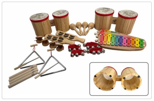 Az „Első zenekarom” készlet tökéletes választás óvodásoknak: akár 16 gyermek számára kínál változatos hangszereket, hogy közösen fedezzék fel a zene örömét játékosan.