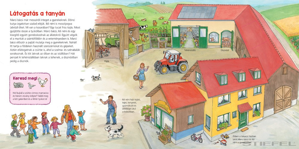 A tanyával kapcsolatos ezernyi kérdésre ez a könyvecske óvodásoknak való, okos válaszokat kínál. A kukucskálók is felfedezésre várnak!