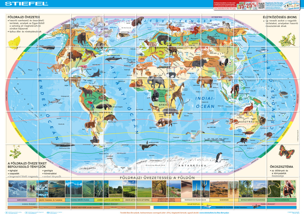 A pálya részletes grafikákkal, állatnevekkel, valamint földrajzi övezetek, országok, hegységek és földrészek feltüntetésével támogatja a környezetismereti, földrajzi és logikai készségek fejlődését. A gyermekek kalandos utazást tehetnek a sarki vidékektől a trópusi esőerdőkig, miközben a Bee-Bot irányításával megoldhatják a pedagógus által összeállított feladatokat.