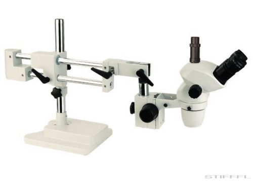 STM45t-pro professzionális zoom (0,67-4,5x) trinokuláris sztereómikroszkóp ipari állványon, 7-45x nagyítással, Plan objektívvel szerelve.