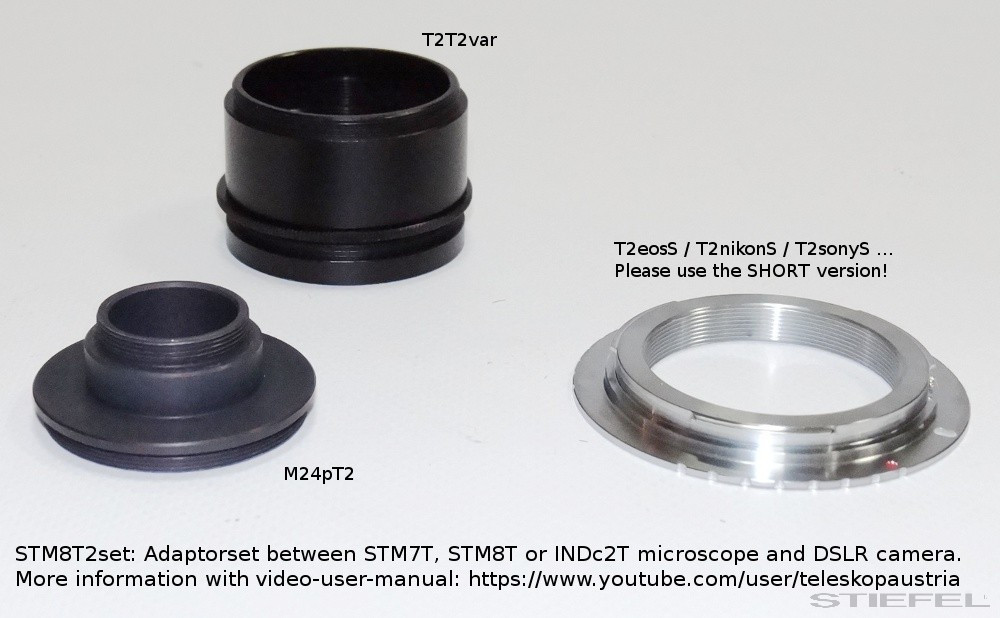 Fotoadapter-szett Full-format DSLR kamerákhoz. A szett tagjai: MikT2 vagy MikStT2, optikai egység, T2T2varS hosszabbító és egy Standard T2-DSLR Adapter.