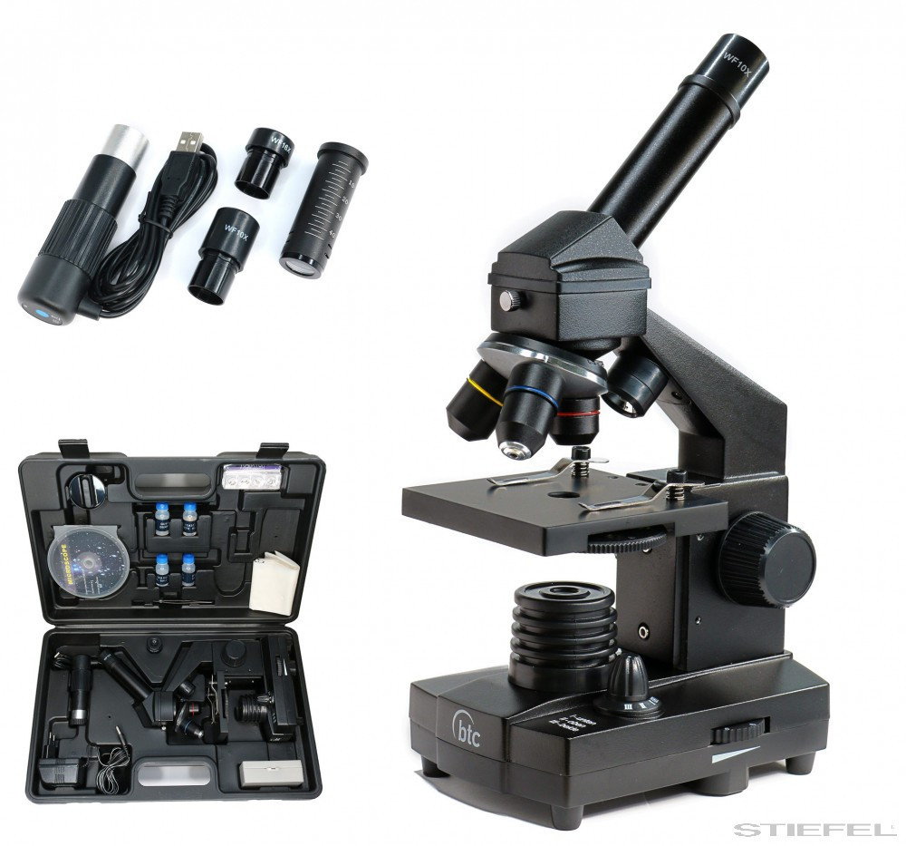 A beépített LED megvilágítással rendelkezõ biológiai mikroszkóp három üveglencsés objektívvel szerelt. A 4x, 10x és 40x objektívjei és WF10x okulárja 40x, 100x és 400x-os nagyítást adnak, mellyel már rengeteg minden megfigyelhető. A 10x-es okulárt a szintén tartozék 16x-osra cserélve 64x, 160x, 640x-es nagyítást kapunk. A szokásos alsó LED világításon felül találunk egy felső világítást is, mellyel a kis nagyításon (40x) felületvizsgálatot is végezhetünk (pl. levelek, kisebb rovarok, lapos kavicsok, csiszoló papír, stb.), így gyerekeknek kiváló lehetőség a természettel való ismerkedésre. A világítás fényereje szabályozható! A fej 45 fokban döntött, mely körbe is forgatható, így kényelmes a betekintés. Szabvány méretű okulárja helyére mikroszkóp kamera is csatlakoztatható (opcionálisan megvásárolható), mellyel a látott kép rögzíthető.