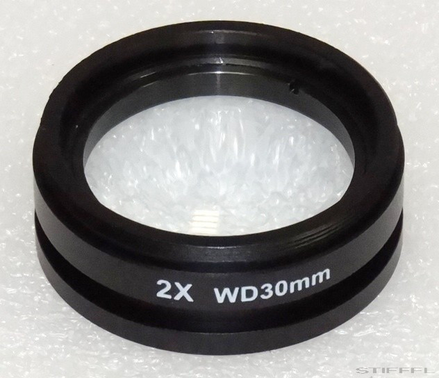 2x előtétlencse STM7/STM8 és IND-C2/3 mikroszkópokhoz. A munkatávolsága 30 mm.