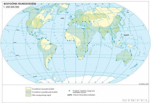 Részletes iskolai falitérkép, mely bemutatja a Bolygónk felmelegedését.
