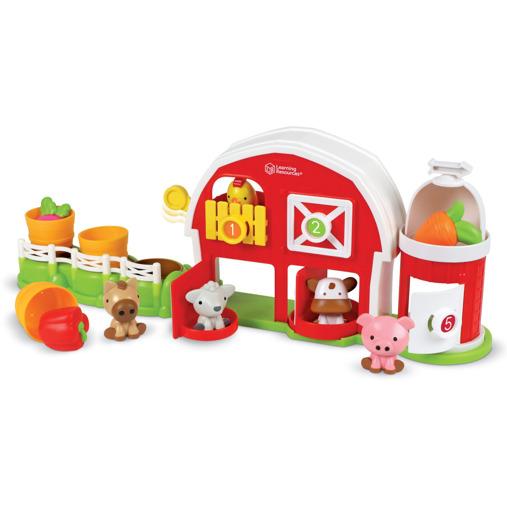 A készlet tartalmaz öt aranyos állatfigurát (tehén, csirke, bárány, malac és ló), valamint három zöldséget (répa, cékla és paprika) és három kosarat, amikkel még több szerepjátékos móka vár.