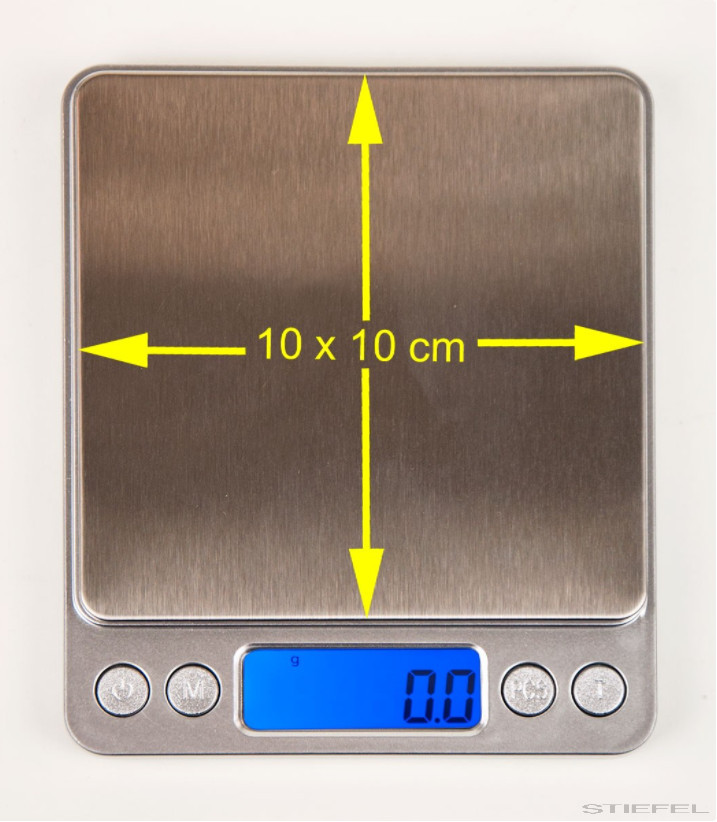 • Mérlegtál, kicsi: 102 x 102 x 7 mm (belső méretek)